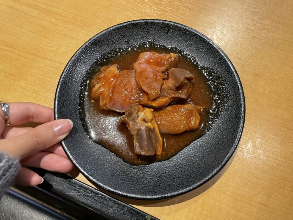 ラムのタンとハツをミックスして味噌に漬け込んだメニューになっているよ👍。