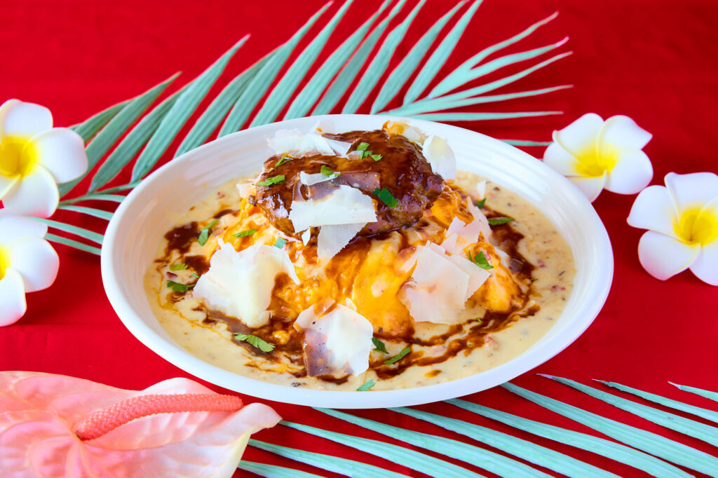 自家製のクリームソースにアボカドをトッピングし、さらにクリーミーなロコモコに!🥑