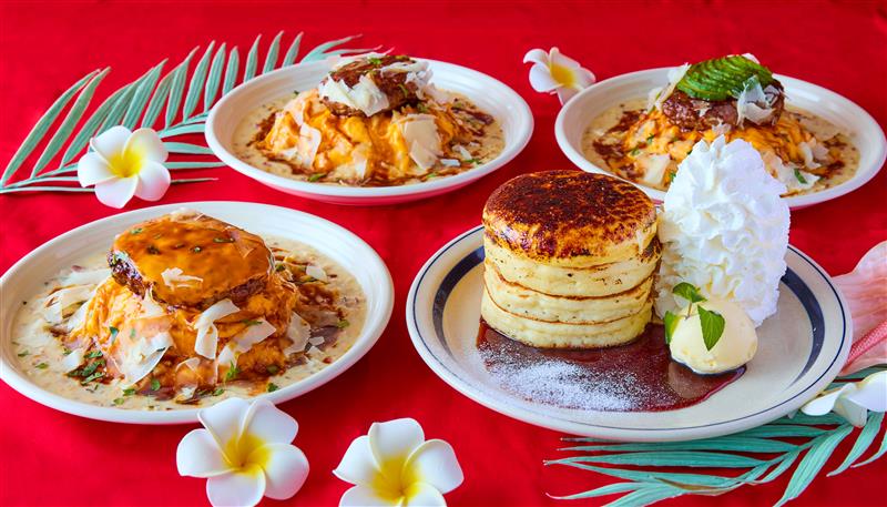 「いちばん近いハワイ」がコンセプトの「コナズ珈琲」から、クレームブリュレを使ったパンケーキや、ポルチーニをたっぷりと使った濃厚なロコモコが発売予定だよ!