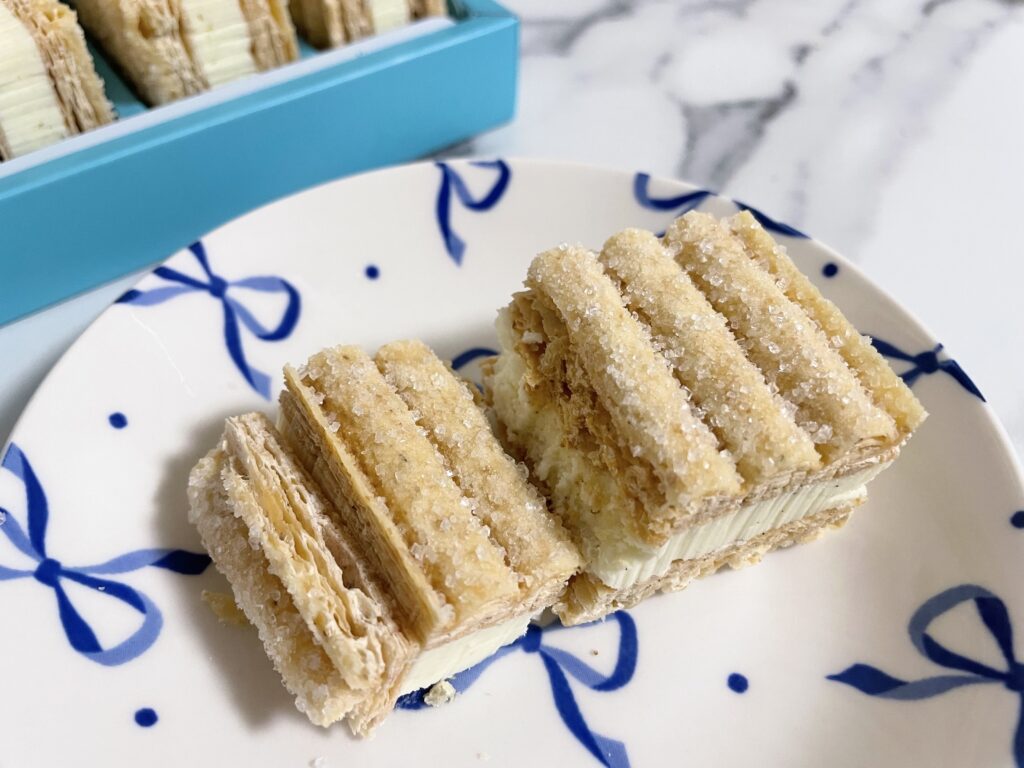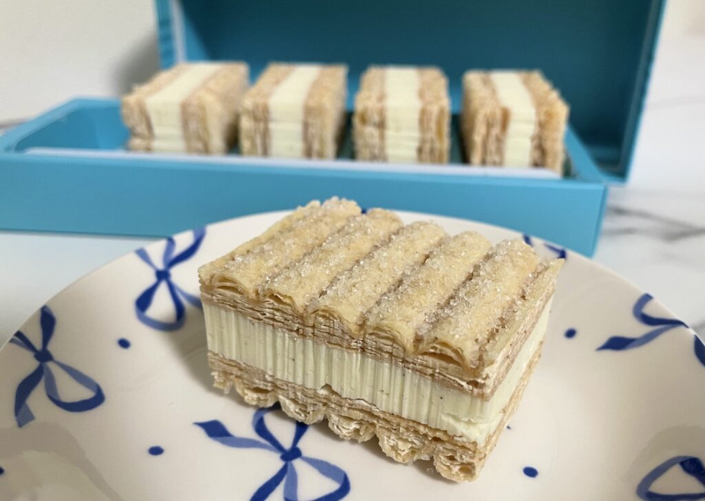 パイのようなザクザクした食感に挟まれた、なめらかで濃厚なバタークリームが魅力的✨。