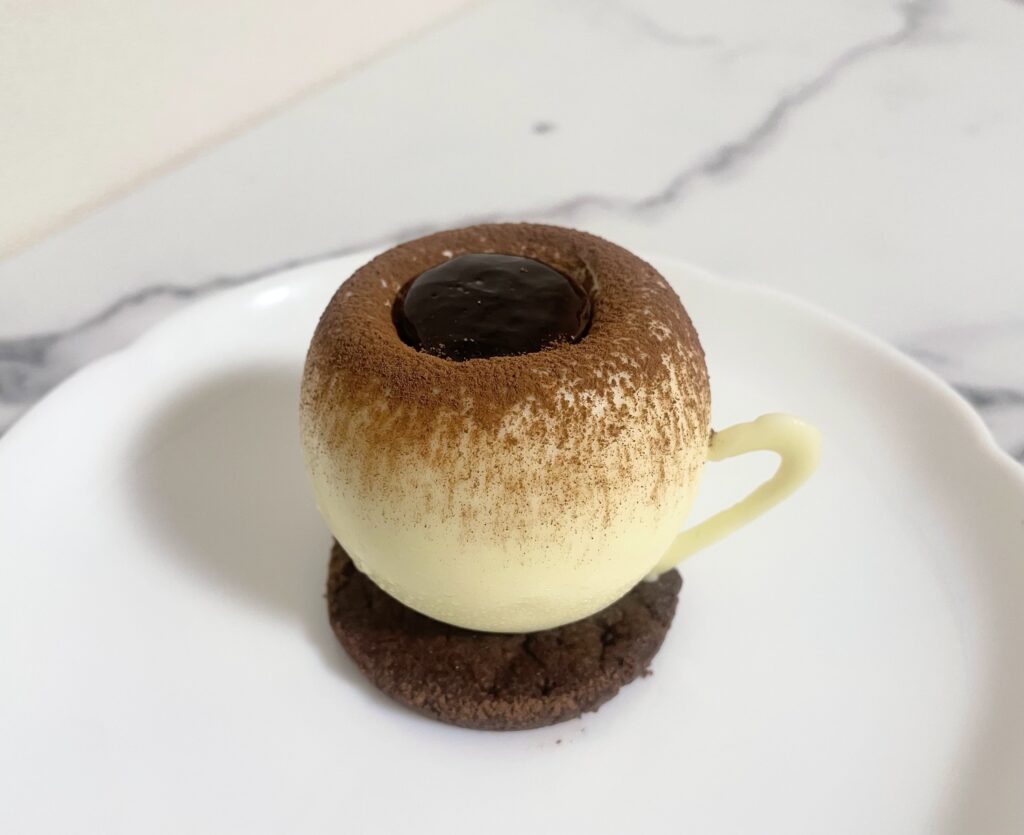 ムースでできたカップの中には、ほろ苦いコーヒーソースが!☕