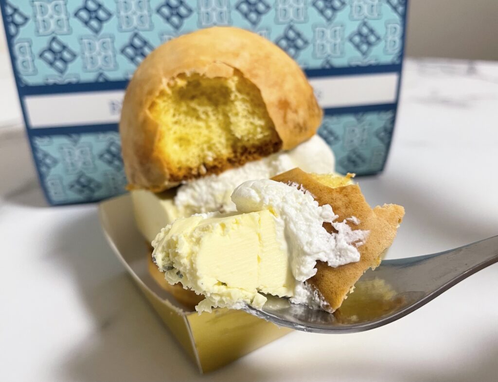 「バタースコッチサンド」上部のシフォン生地はサクサク食感で、間のバターホイップムースはなめらか♡