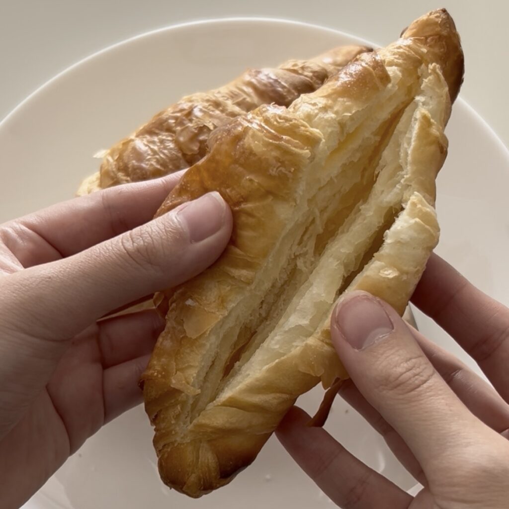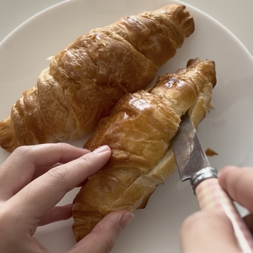 市販のクロワッサンを用意して、横からスリットを入れます。