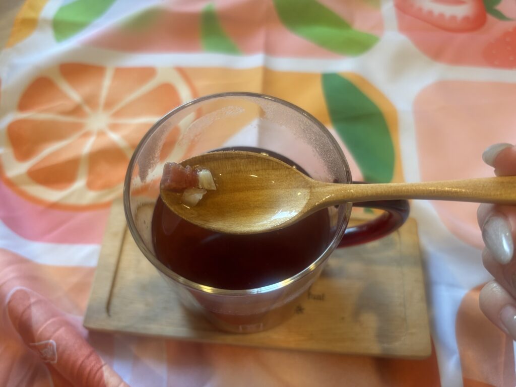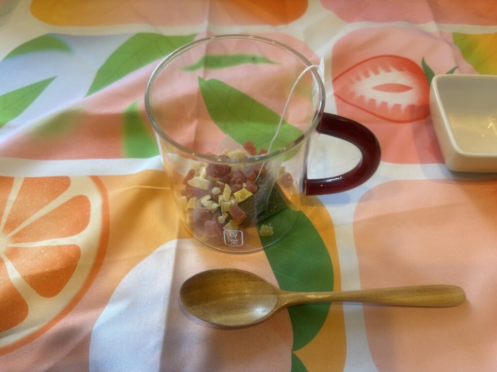 ティーバッグを軽く振って取り出し、フルーツと混ぜる。🪄