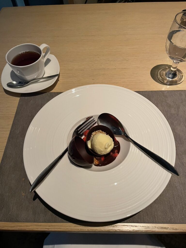 注目は、4種のデザートの中から選ぶことができる、温かいチョコレートをかけていただく「ショコラドーム」🍫❄️。