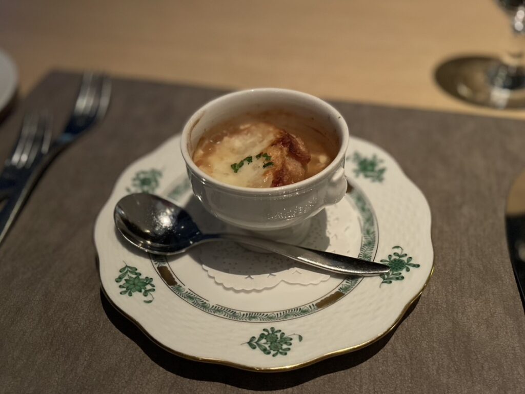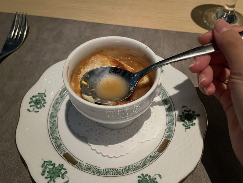 3種のチーズをのせたオニオングラタンスープ
