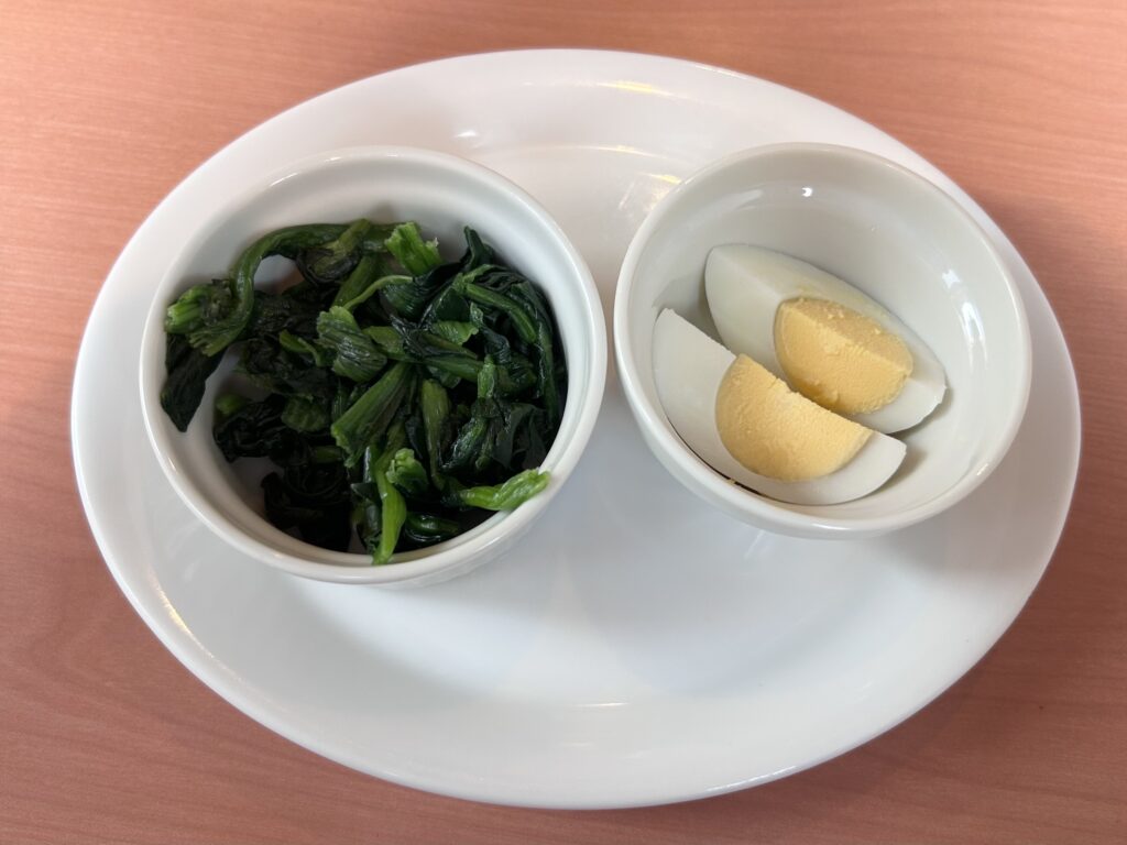 今回選んだトッピングは、「ゆで卵」と「ほうれん草」。