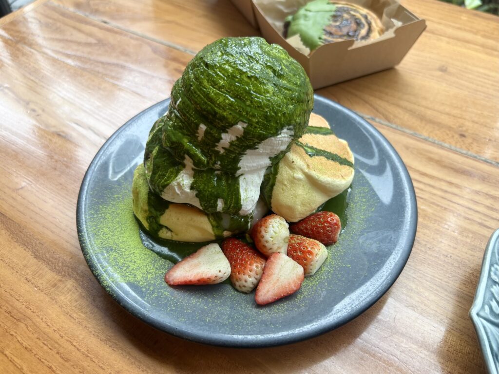 柚子アイスクリームと白餡、八女抹茶がマッチしていてすっきり爽やかなパンケーキになっていました😉!