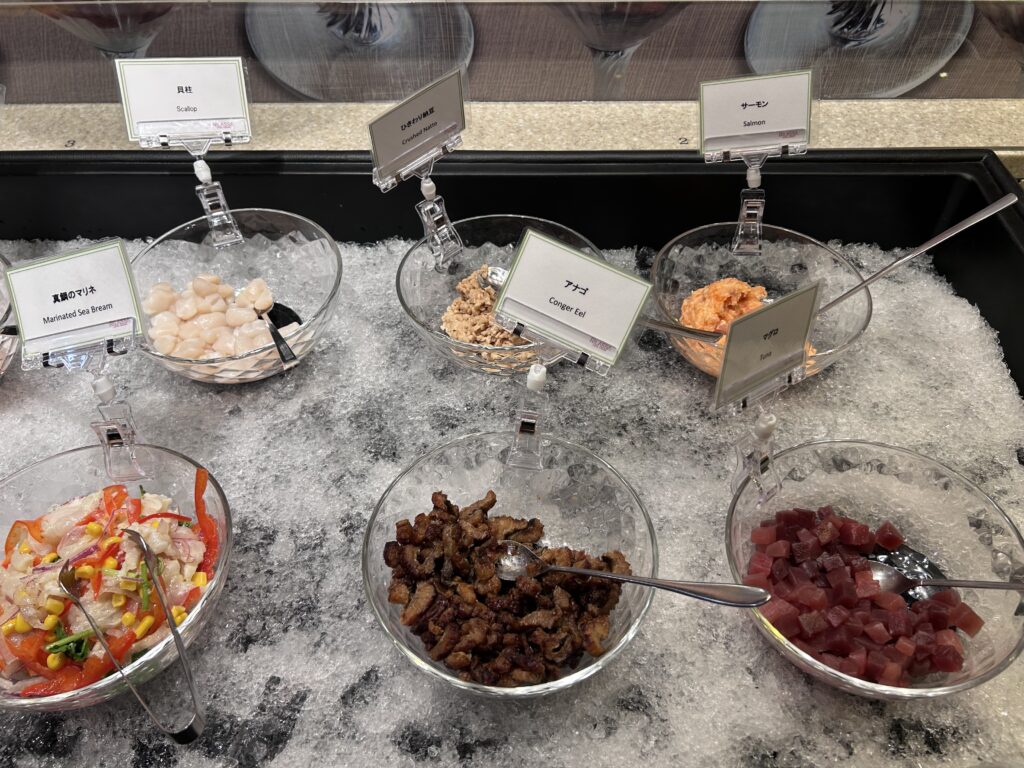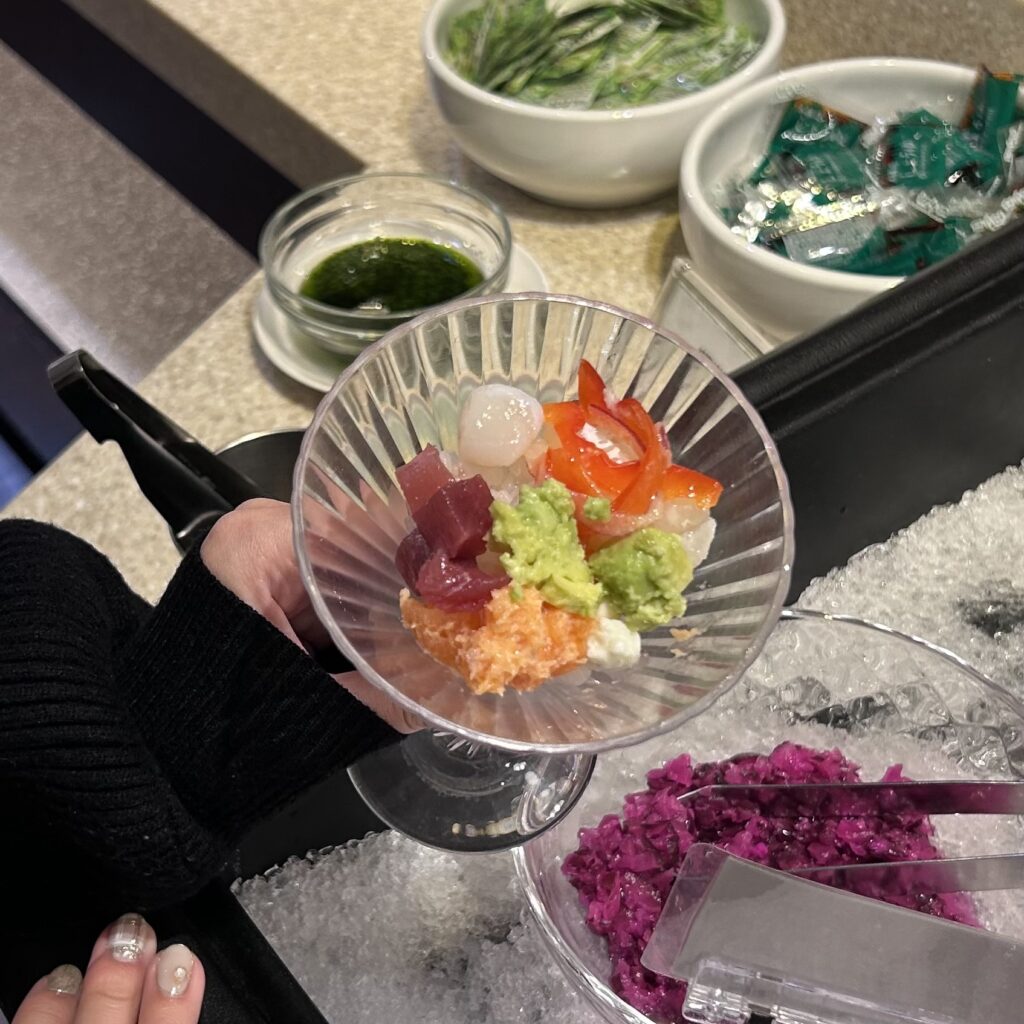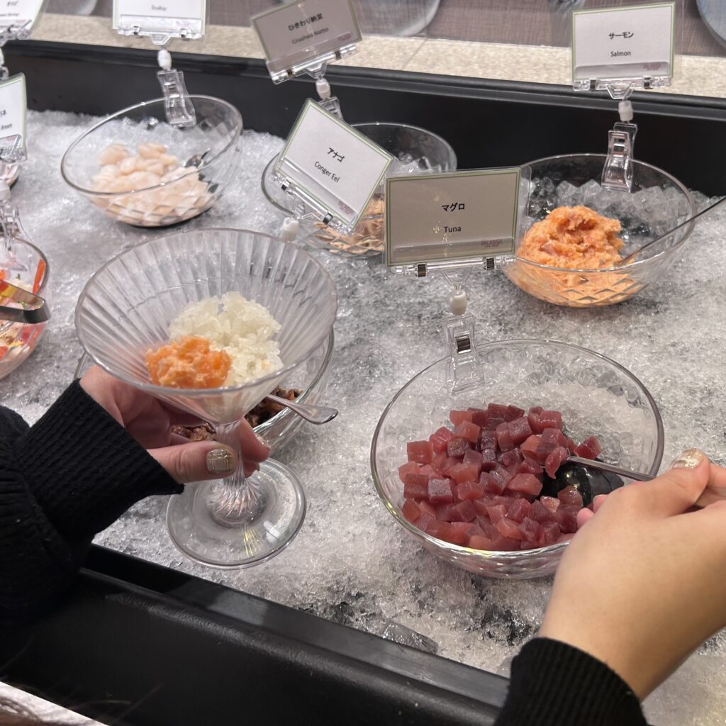 鮪・鮭・甘えび・いかオクラなど、10種類以上の海鮮素材を自由に盛り付けて、自分好みのオリジナル海鮮パフェが完成します♡