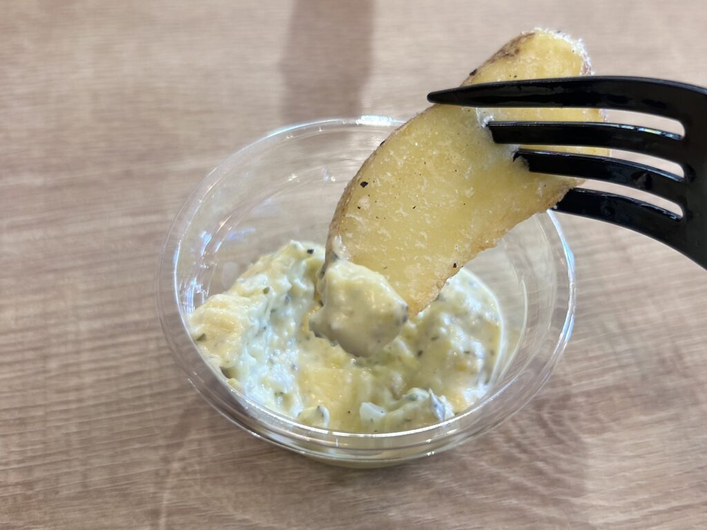 ローズマリー・オレガノ・タイムをブレンドしたシーズニングと、具沢山の特製タルタルソースを北海道産ポテトにディップ。🍟✨