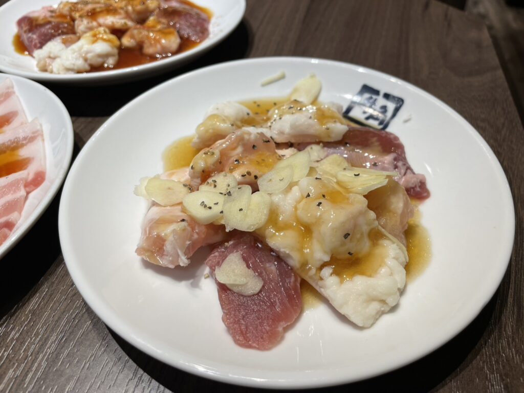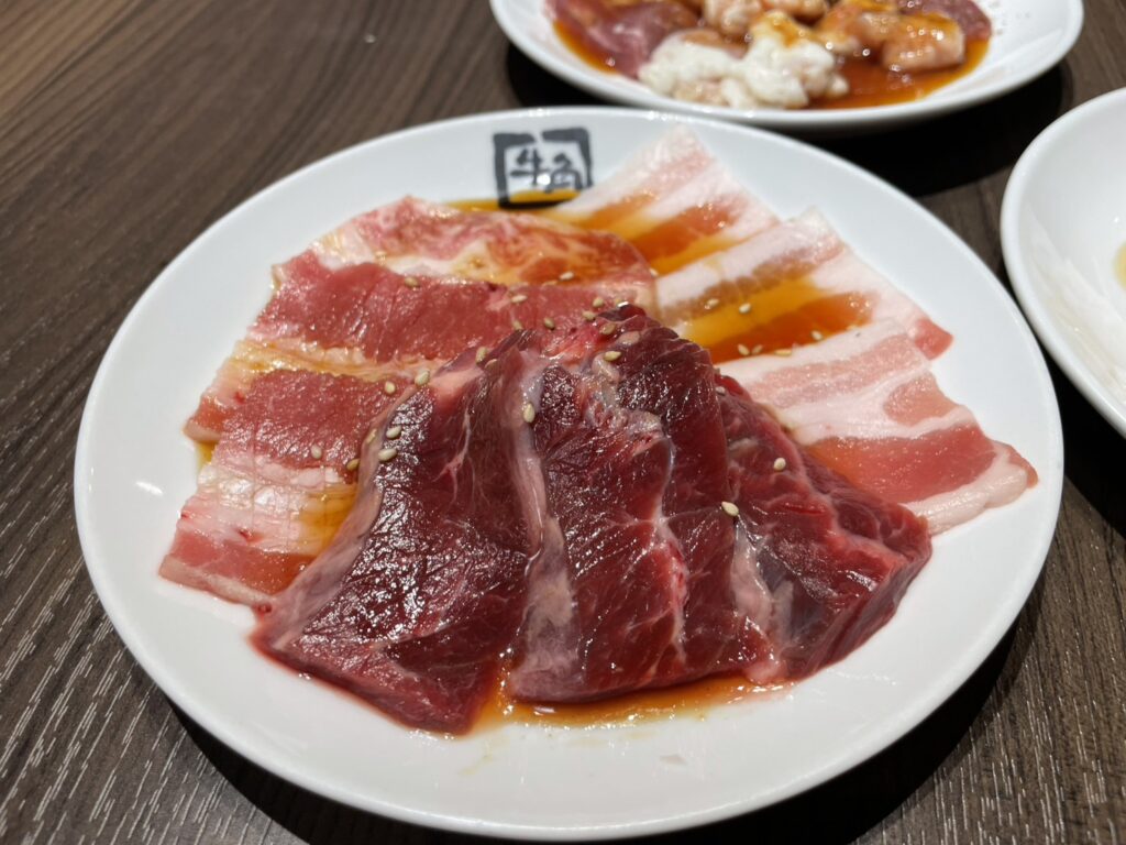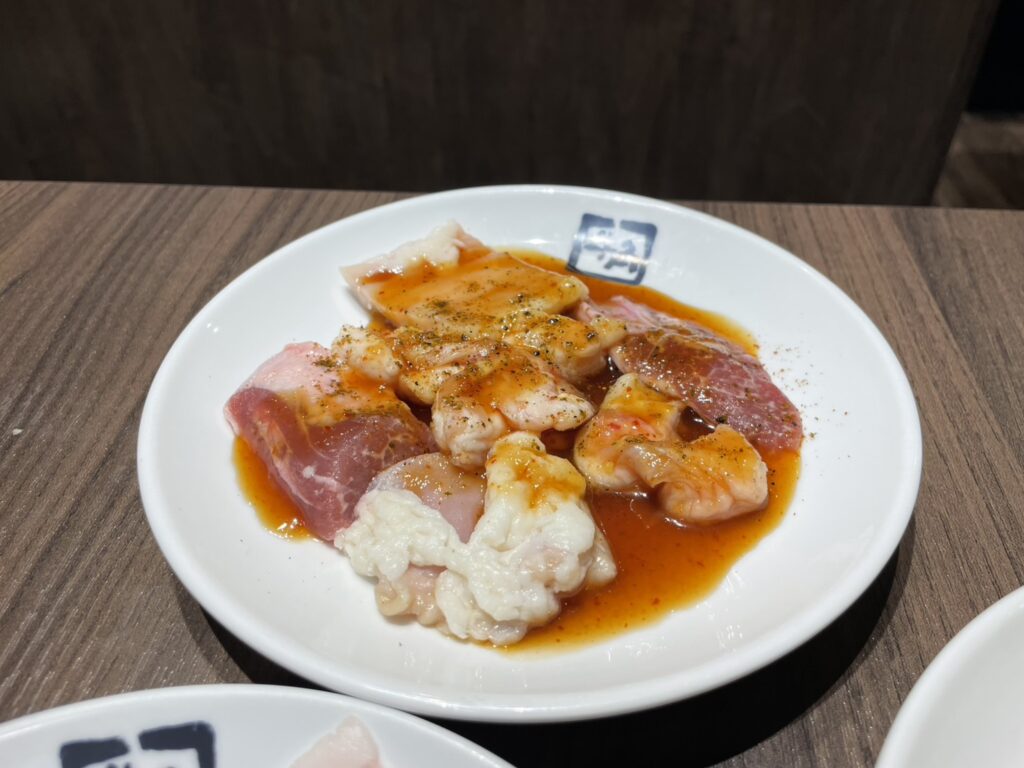 気になる焼肉は、定番のジューシーカルビ、牛ハラミ、豚ハラミの焼肉盛りに加えて、選べるホルモン盛りもついてくるんです!🥓