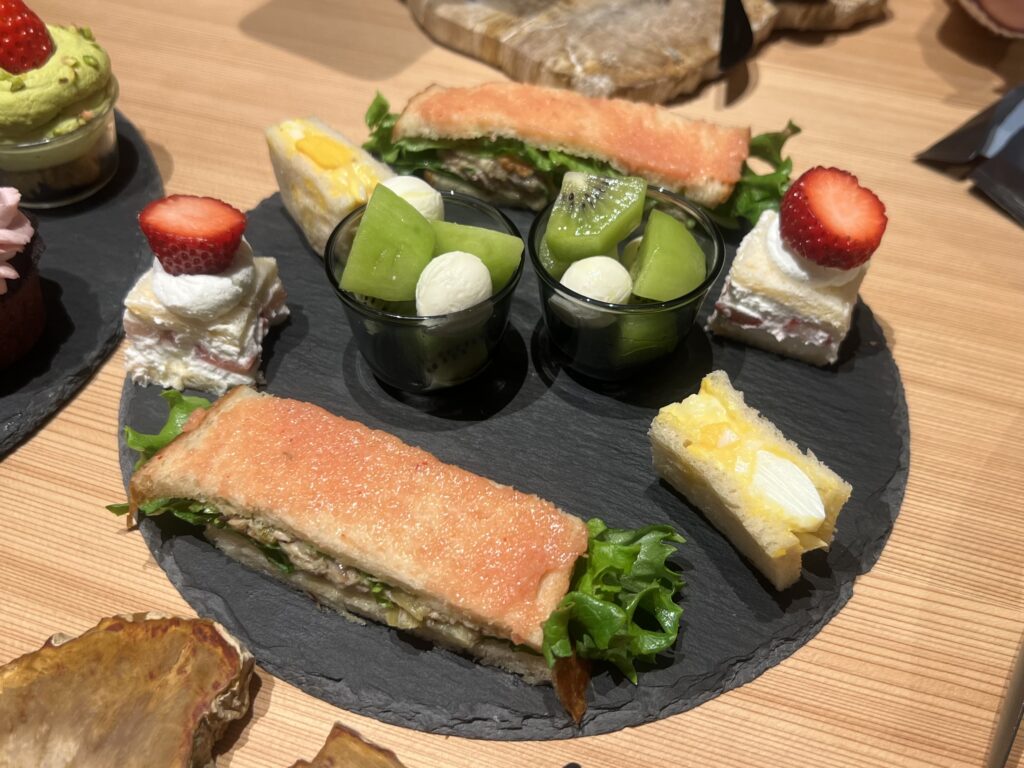 もちろん焼き菓子が主役ですが、サンドウィッチやカプレーゼなどのセイボリーもついていて、最後まで飽きずに楽しむことができたよ🤤♪