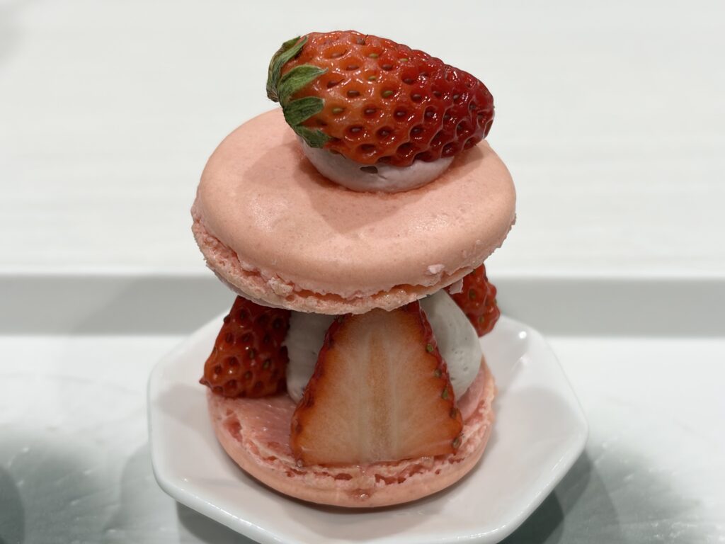 サクサクとしたマカロン生地に、甘酸っぱい苺がとてもよく合います✨。