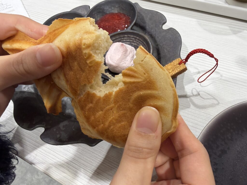 苺ジャムは甘酸っぱくて、シンプルな味わいのたい焼きにぴったりでした!🍓