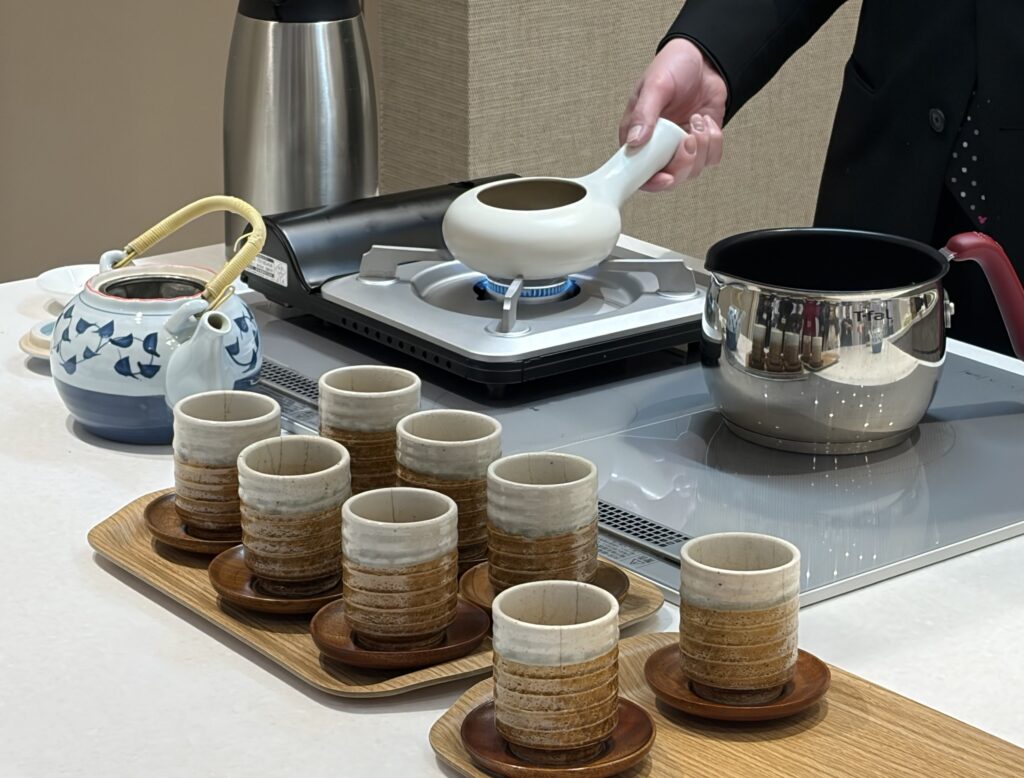 ほうじ茶は、焙烙(ほうろく)を使ったデモンストレーションで、炒りたてを楽しむことができます!🍵