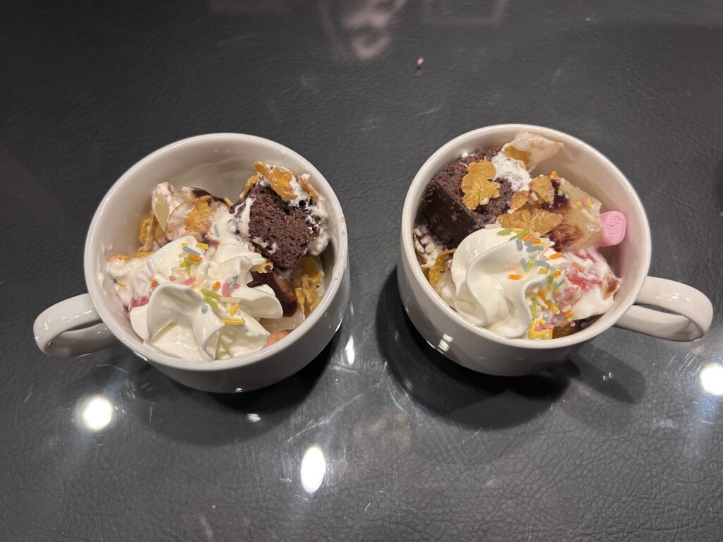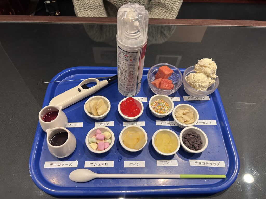 なんと1.8Lサイズの巨大ピッチャーに、アイス・フルーツ・ソースなどを自分たちで自由に盛り付けできるんです♡