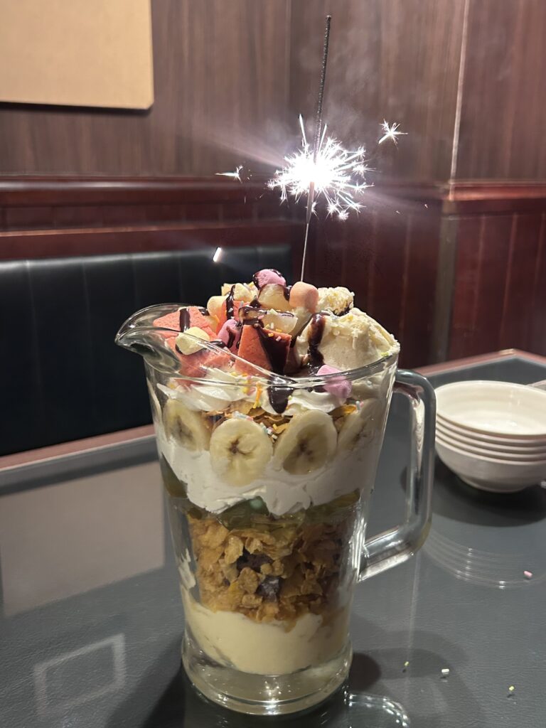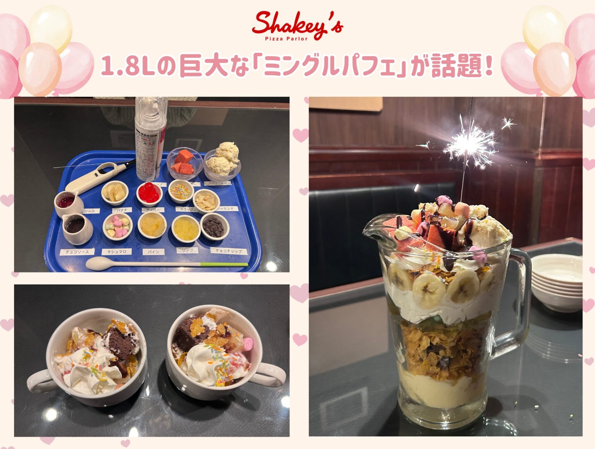 シェーキーズ池袋東口店限定で、1.8Lの超巨大パフェ「ミングルパフェ」が登場。🍨✨