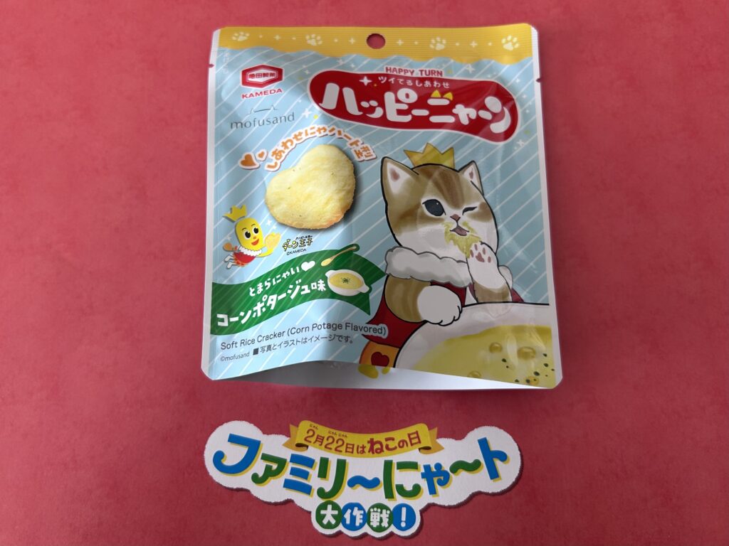 コーンポタージュ味のハート型ハッピーターン。💛🐾