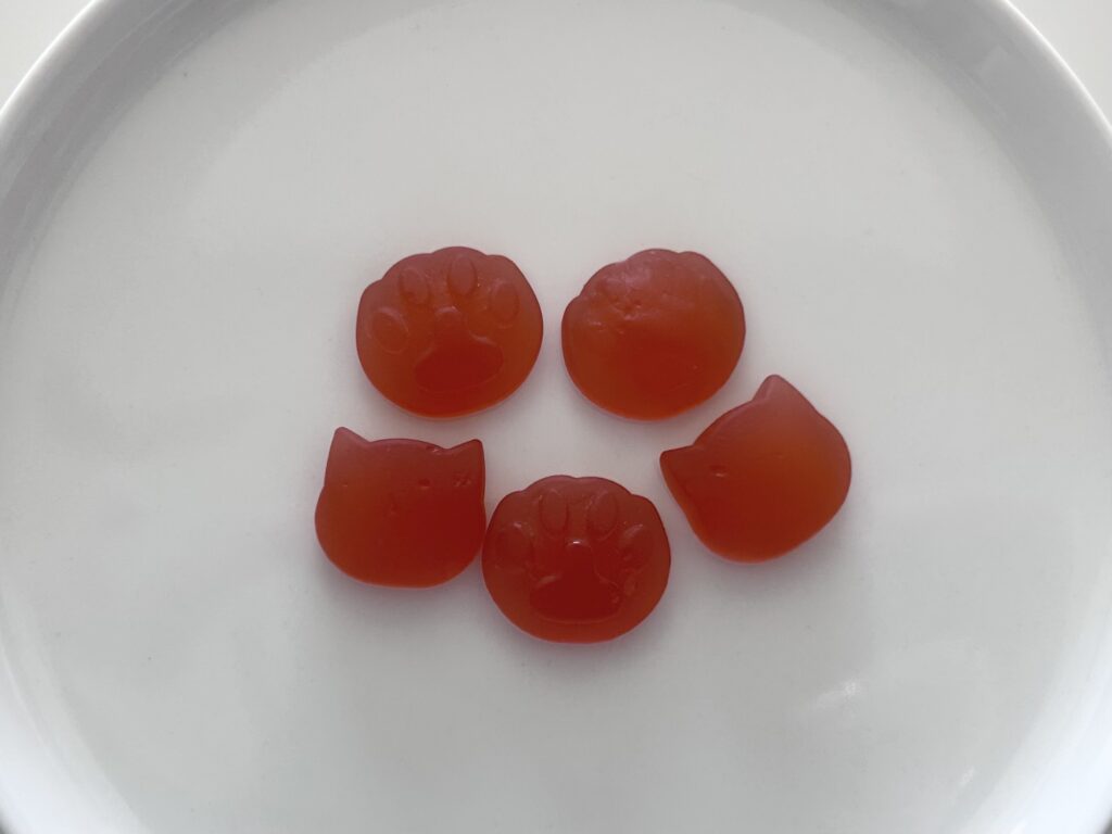 にゃんこ型&肉球型グミの2種アソート。🍑🐾