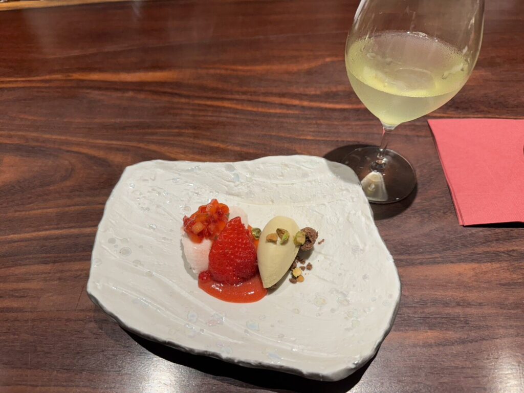 ここでは、「あまおうづくしのパンナコッタ ピスタチオのジェラートと共に」が登場します♡