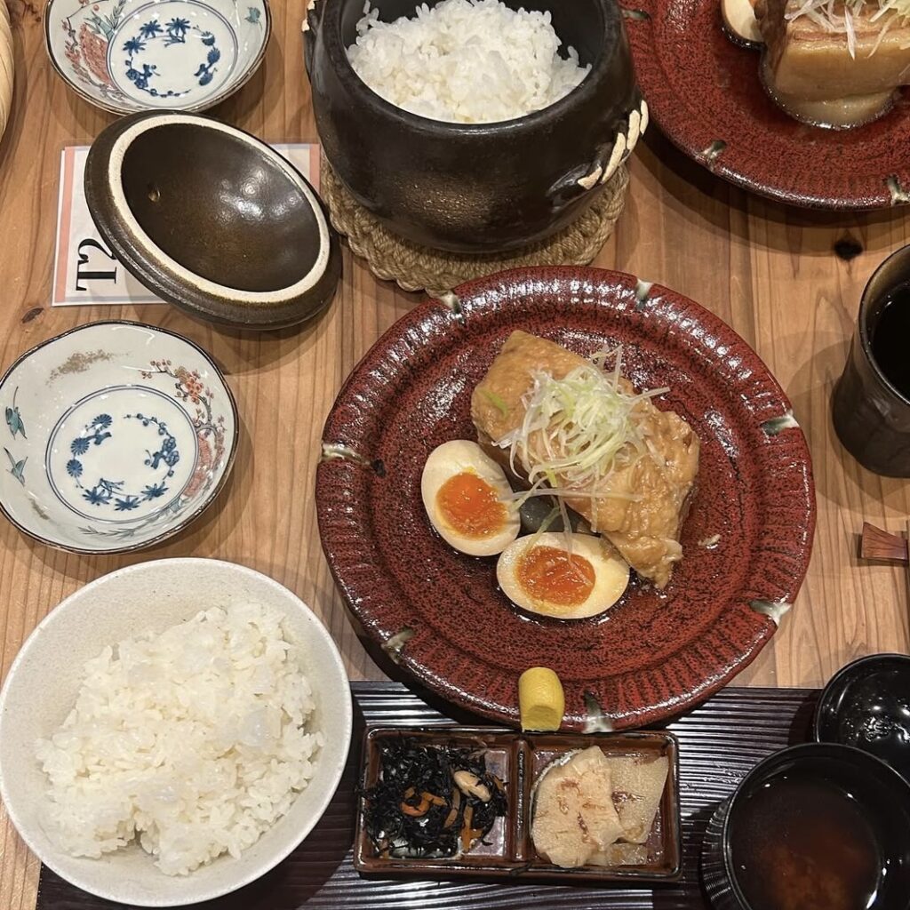 人気メニューの「豚の角煮定食」は、箸でほぐれるほど柔らかい角煮が絶品。✨
