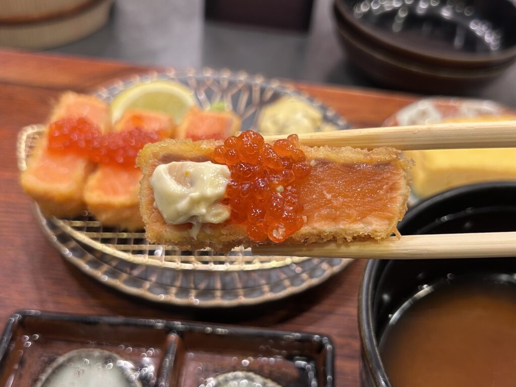 まずはそのままサーモンの旨みを楽しみ、次にいくらと合わせて食べると、濃厚な旨みが一気に広がる贅沢な味わいに!