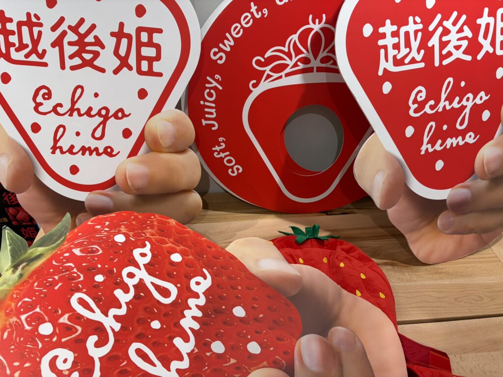 いちごの被り物や、山盛り越後姫展示なども用意されていました!🍓