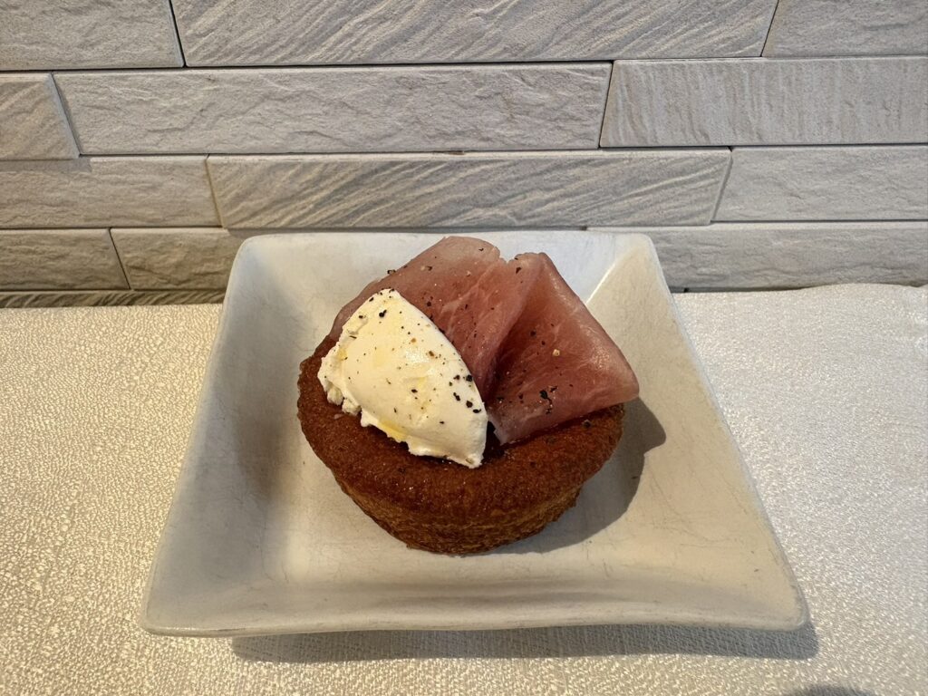 「The BUTTER」に生ハムとクリームチーズを乗せた、高級感あふれるアレンジレシピ✨。