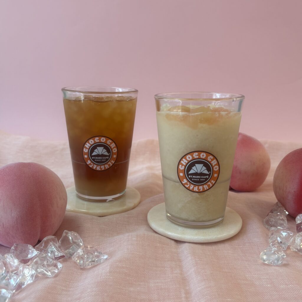 祇園辻利との大人気コラボレーションと、白桃をふんだんに使用した2種類のドリンクが発売されます!