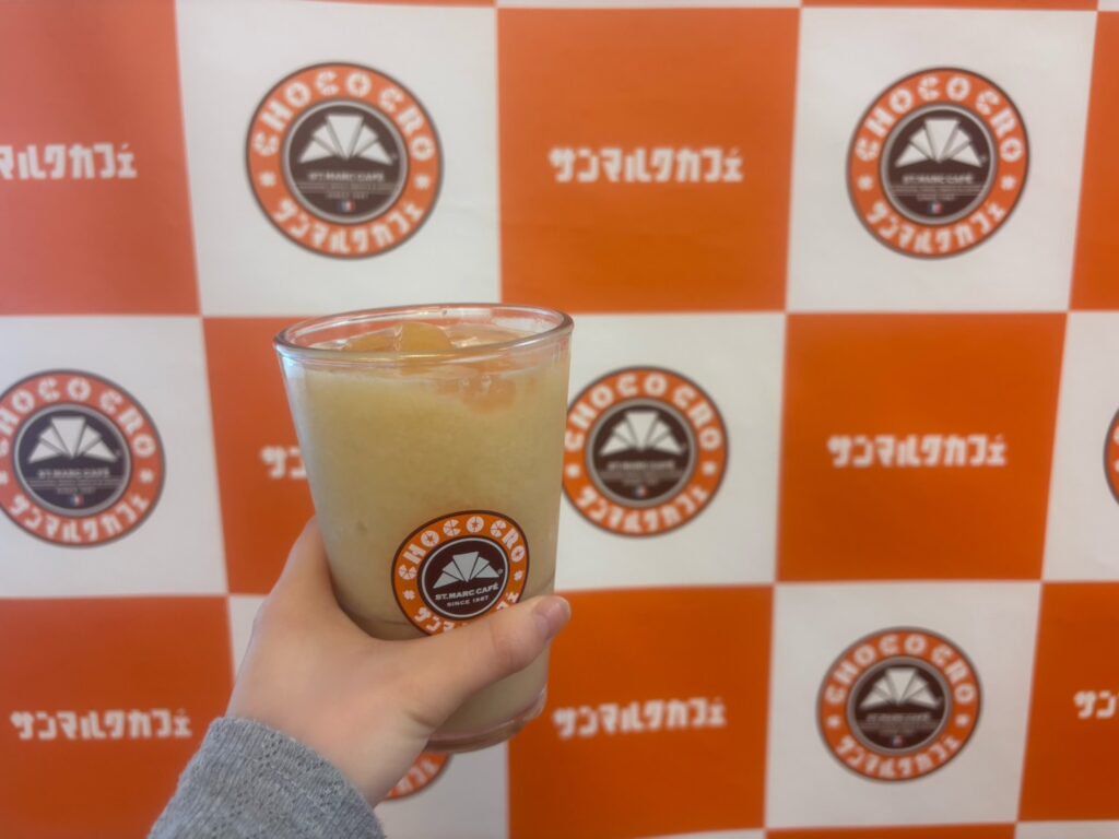 こちらのドリンクにも果肉ソースが使用されているよ🍑💕。