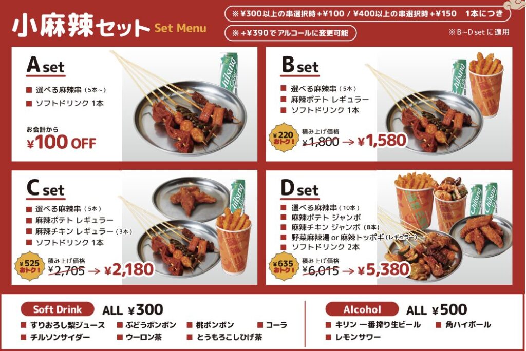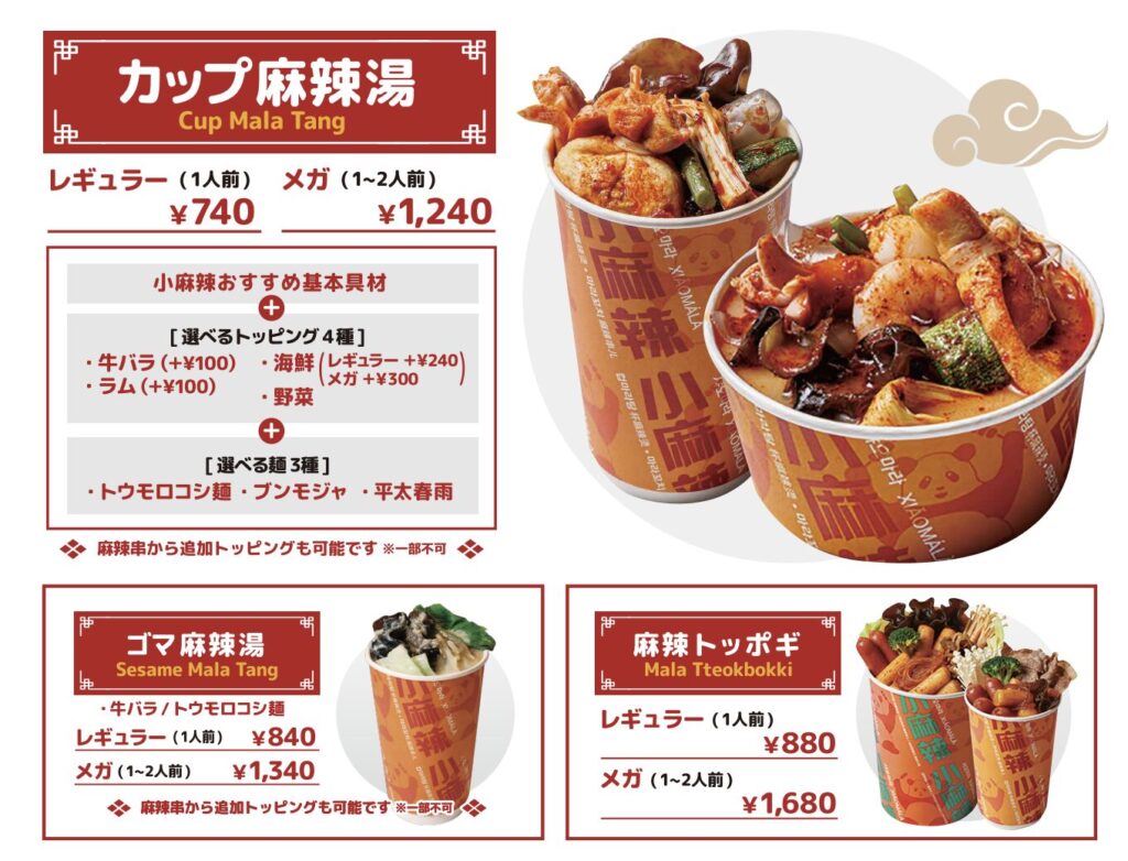 麻辣湯でお馴染みの具材を使った麻辣串(マーラーチャン)と食べ歩きにもぴったりのカップ麻辣湯など、新感覚の麻辣体験をお届けします。💕