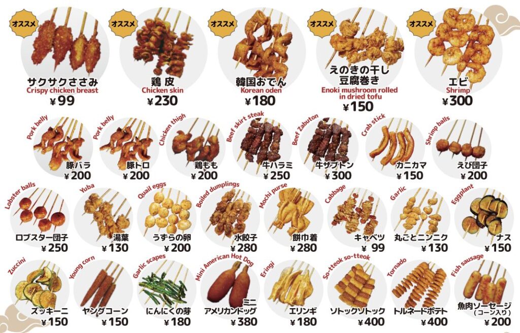 すべて串に刺さっているので、手軽に食べることができます。✨