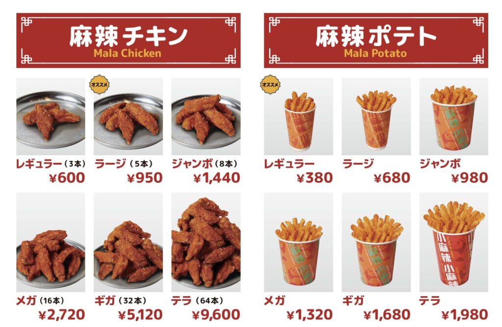 麻辣チキン、麻辣ポテトといったサイドメニューも充実!