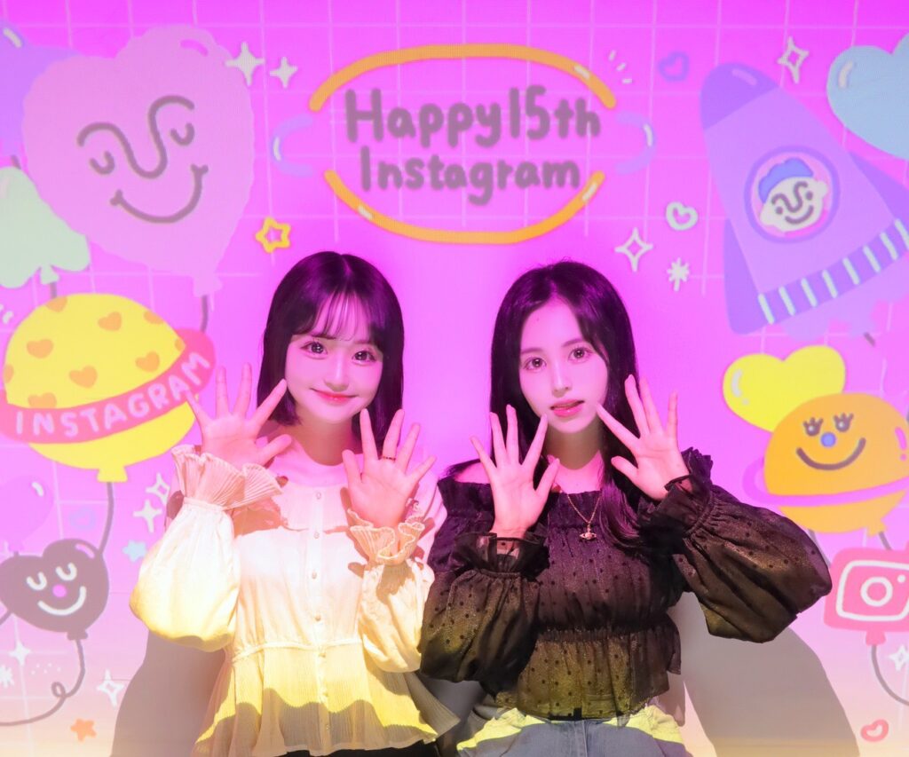 撮影用の背景には、「Happy 15th Instagram」のメッセージが映し出されました!✨