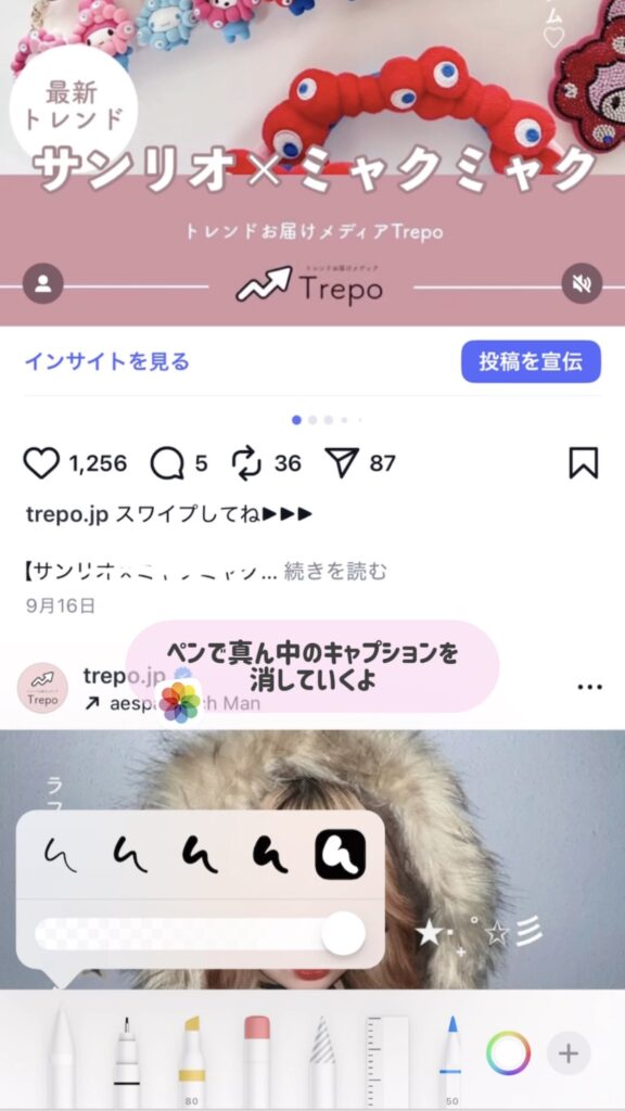 もしキャプション文を書いていたら、iPhoneの「写真」アプリの白いペンを使って消しておこう✔