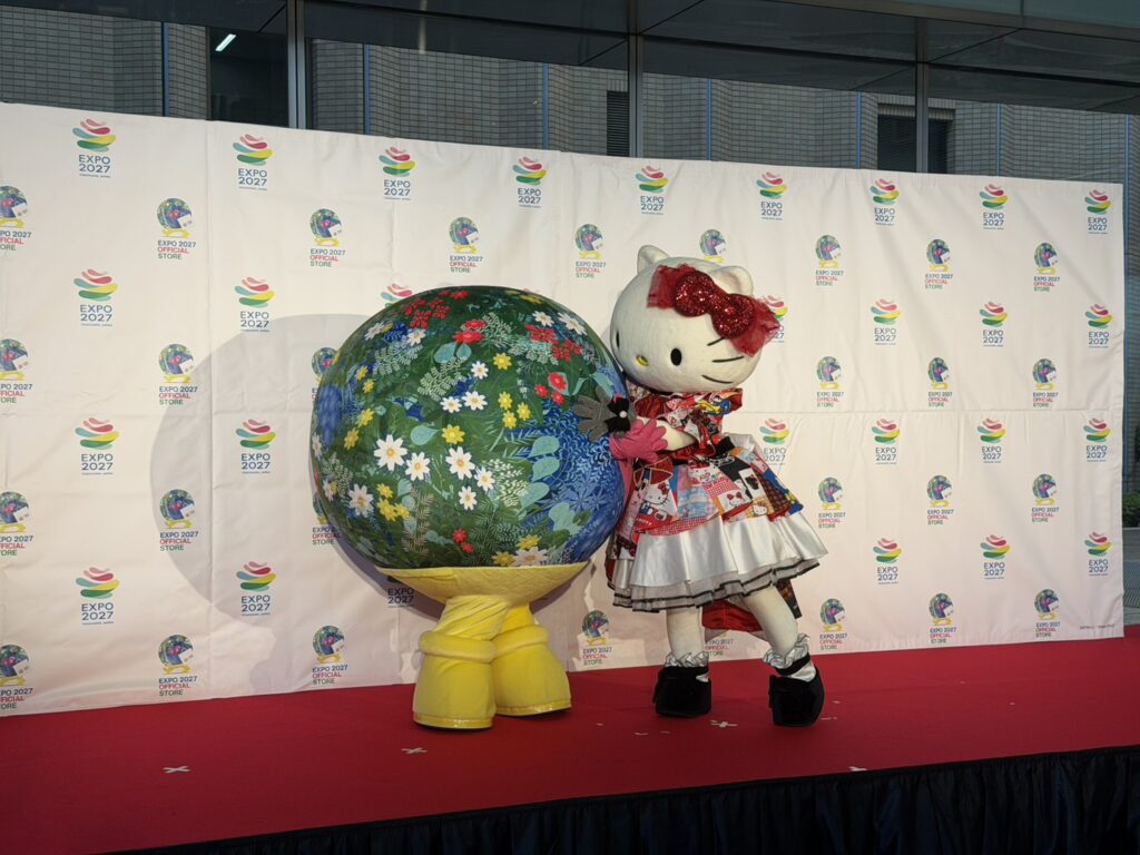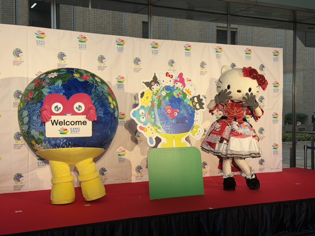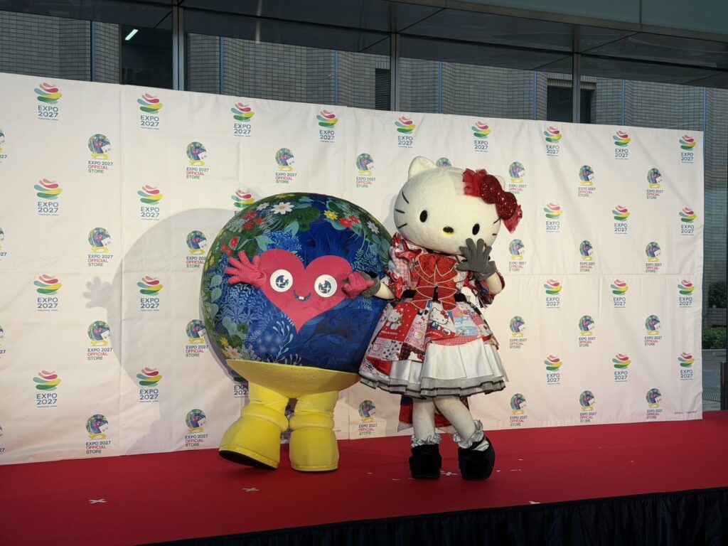 発表会では、GREEN×EXPO2027の公式マスコットキャラクターの「トゥンクトゥンク」と株式会社サンリオとのコラボレーション商品が発表され、トゥンクトゥンクとハローキティが登場しました♡