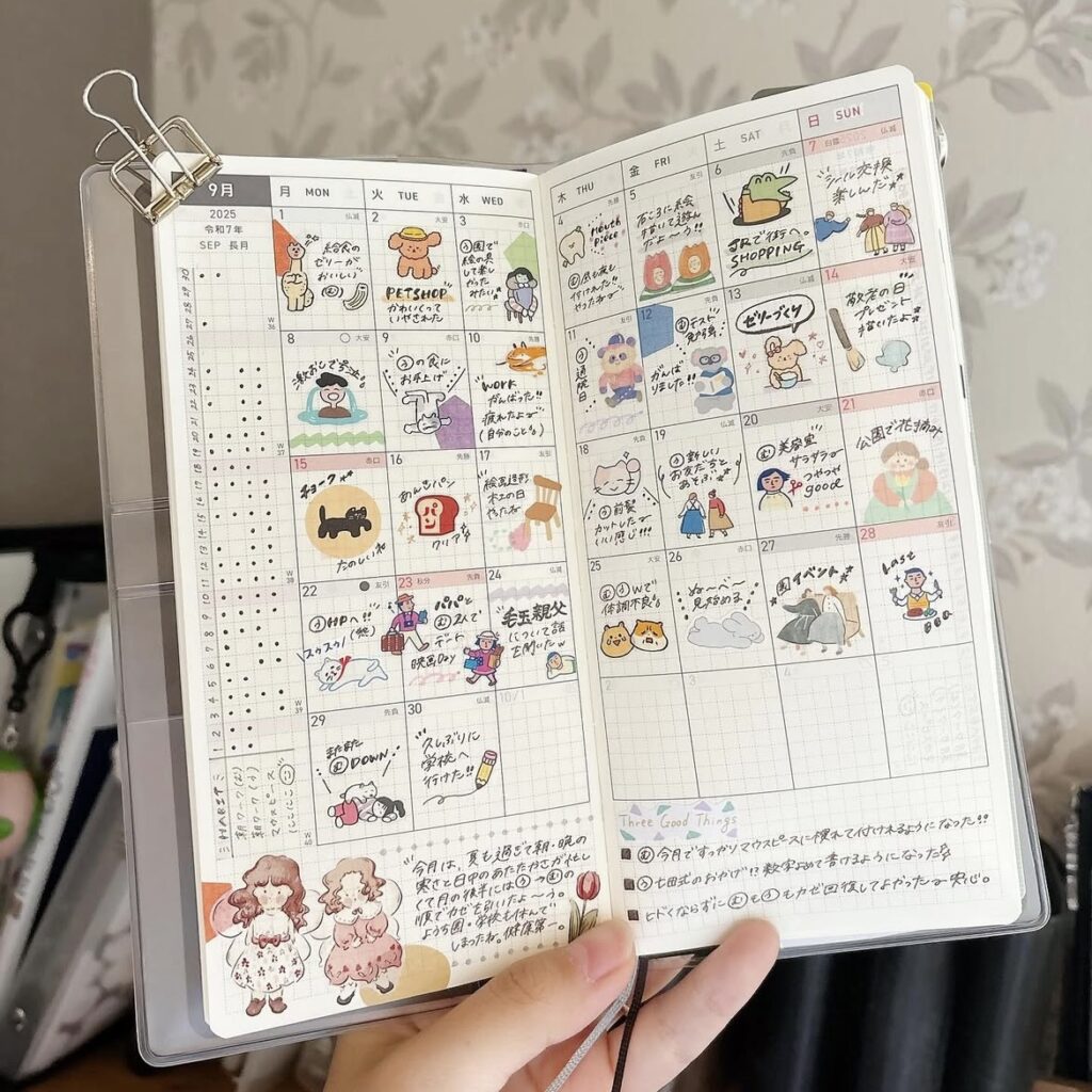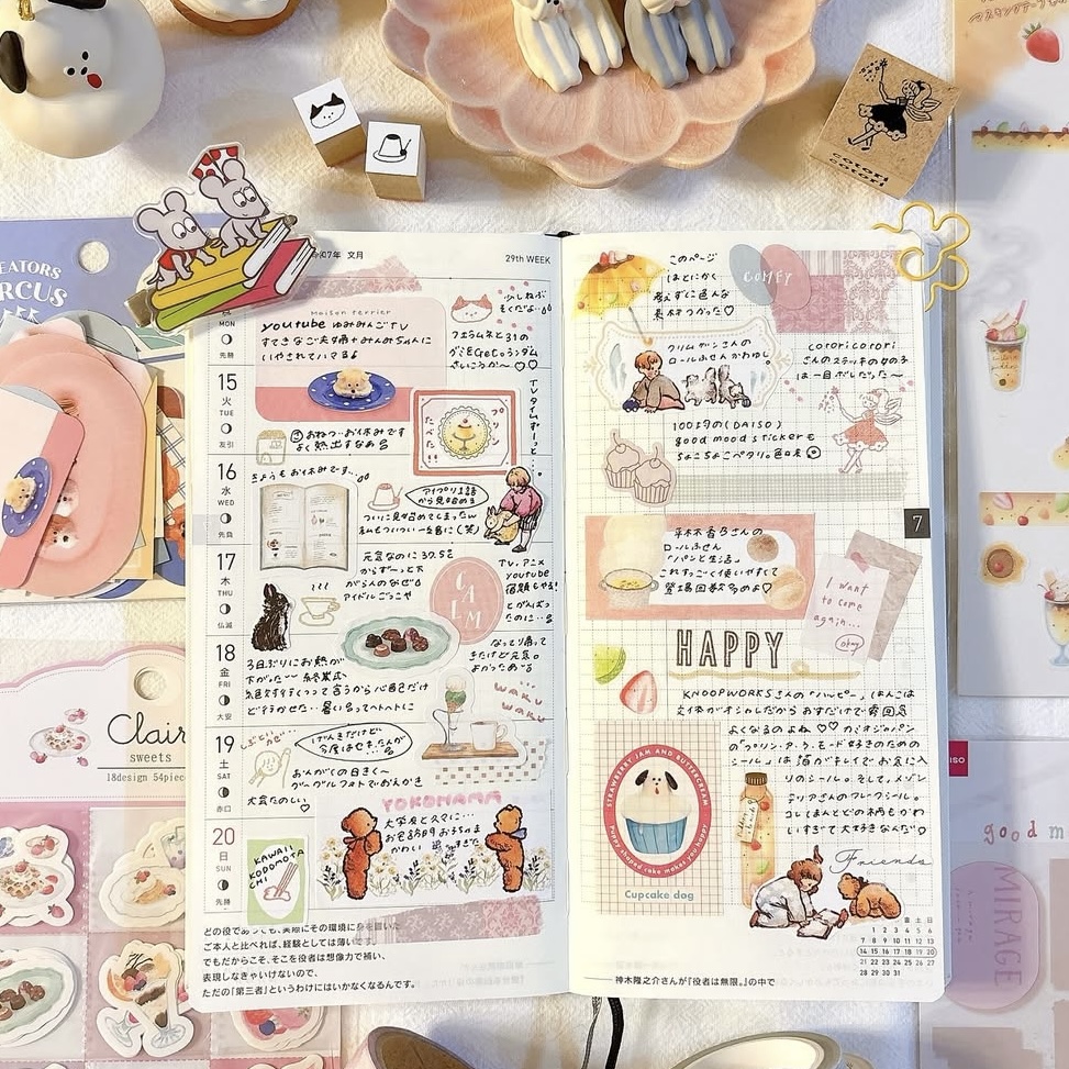 ハート・星・ちょうちょ・小花などのワンポイントのイラストで一気に可愛い手帳デコに。🥰♡