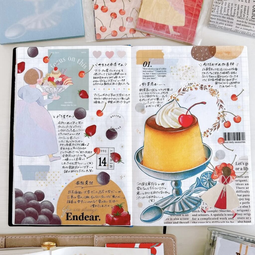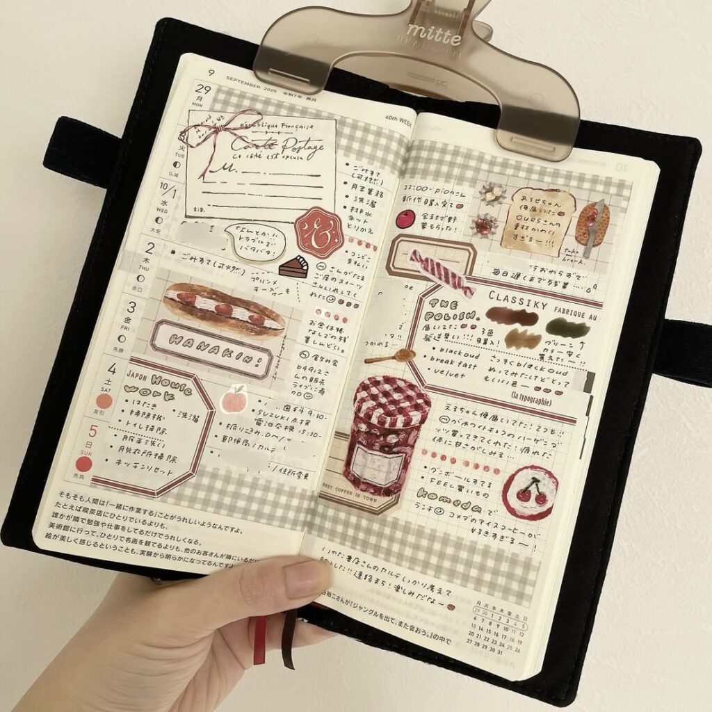 ページの上下にマスキングテープを貼るだけで、“額縁みたいな仕上がり”になって一気にこなれ感UP!🎀