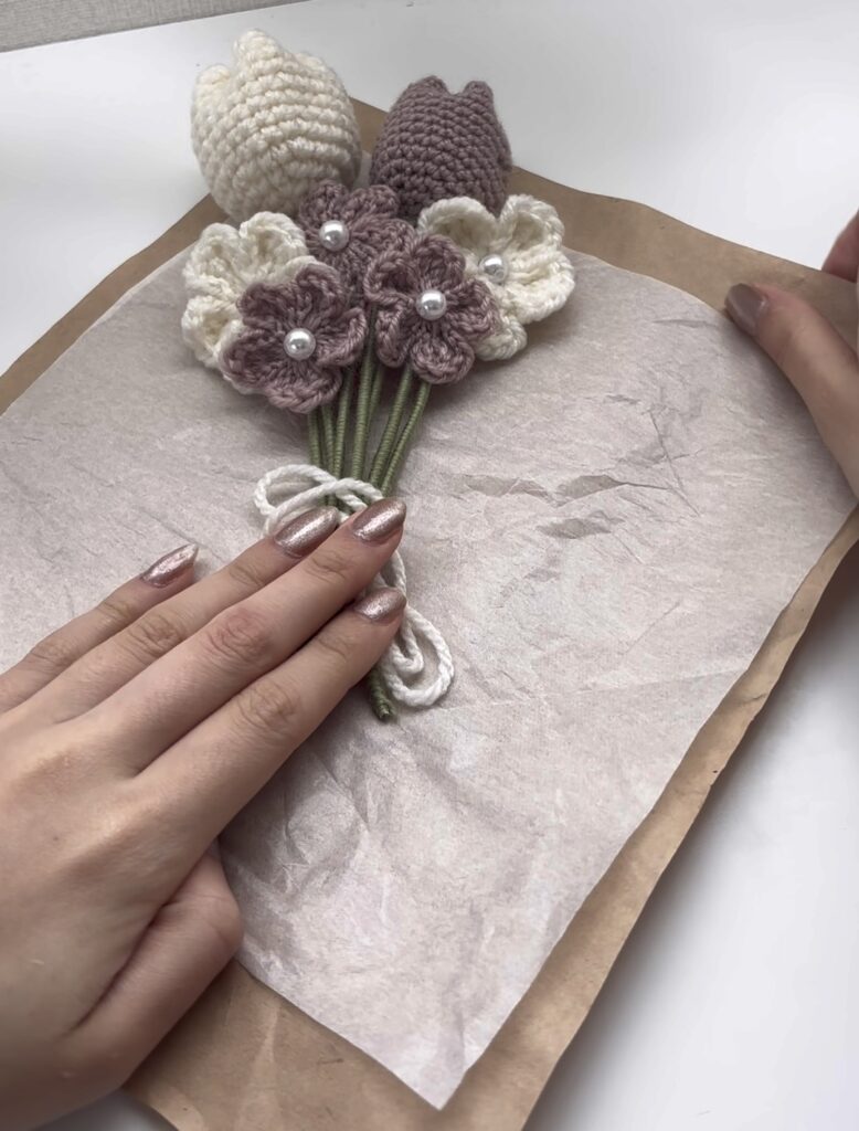 今回は、編み方が簡単なチューリップと勿忘草でブーケを作っていきます!