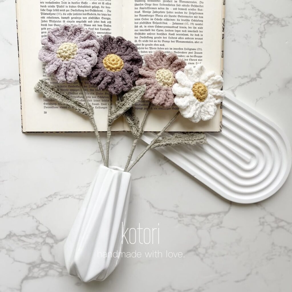 編み物ブーケのお花は、花瓶に入れて本物のお花のように飾っても可愛い🌺