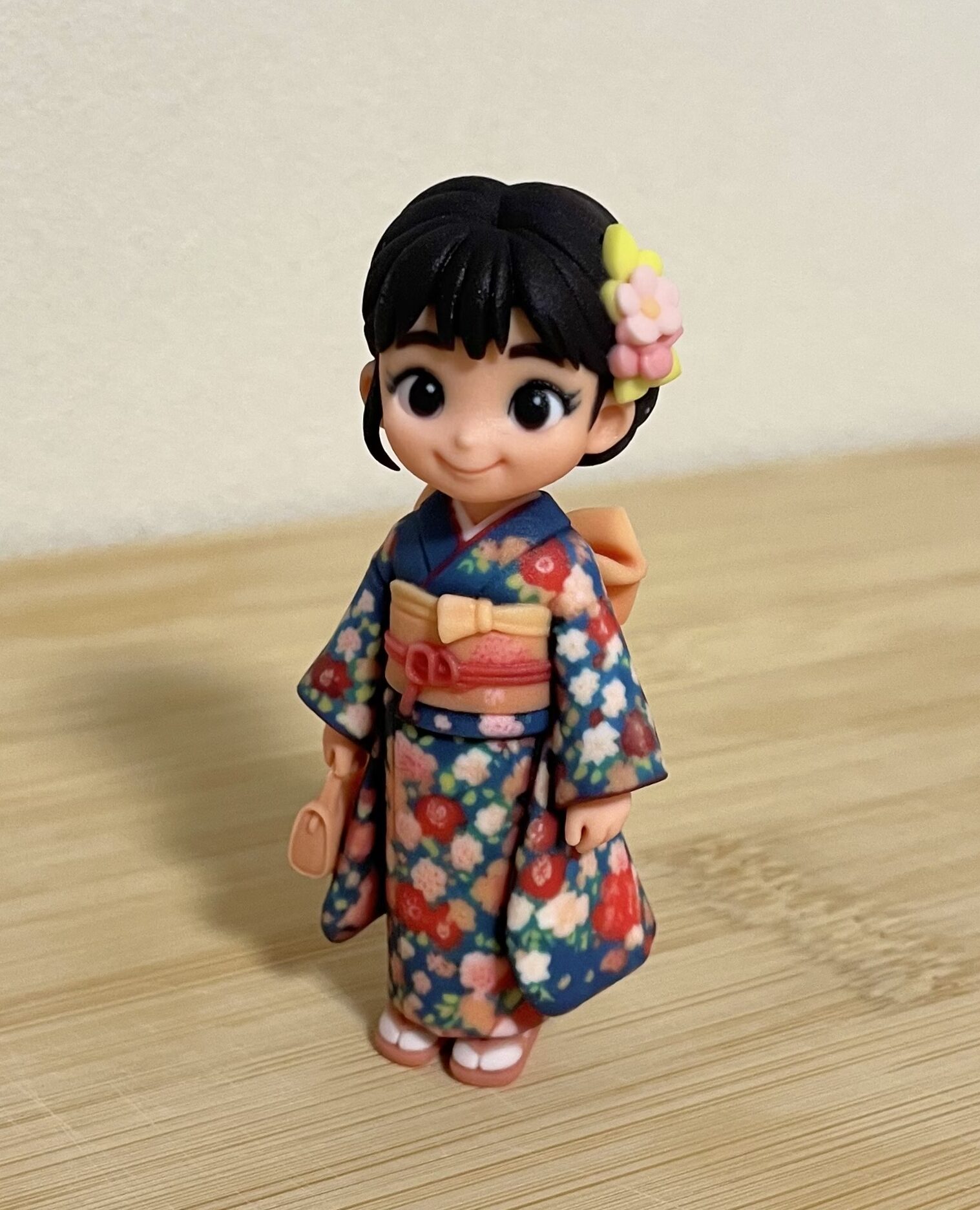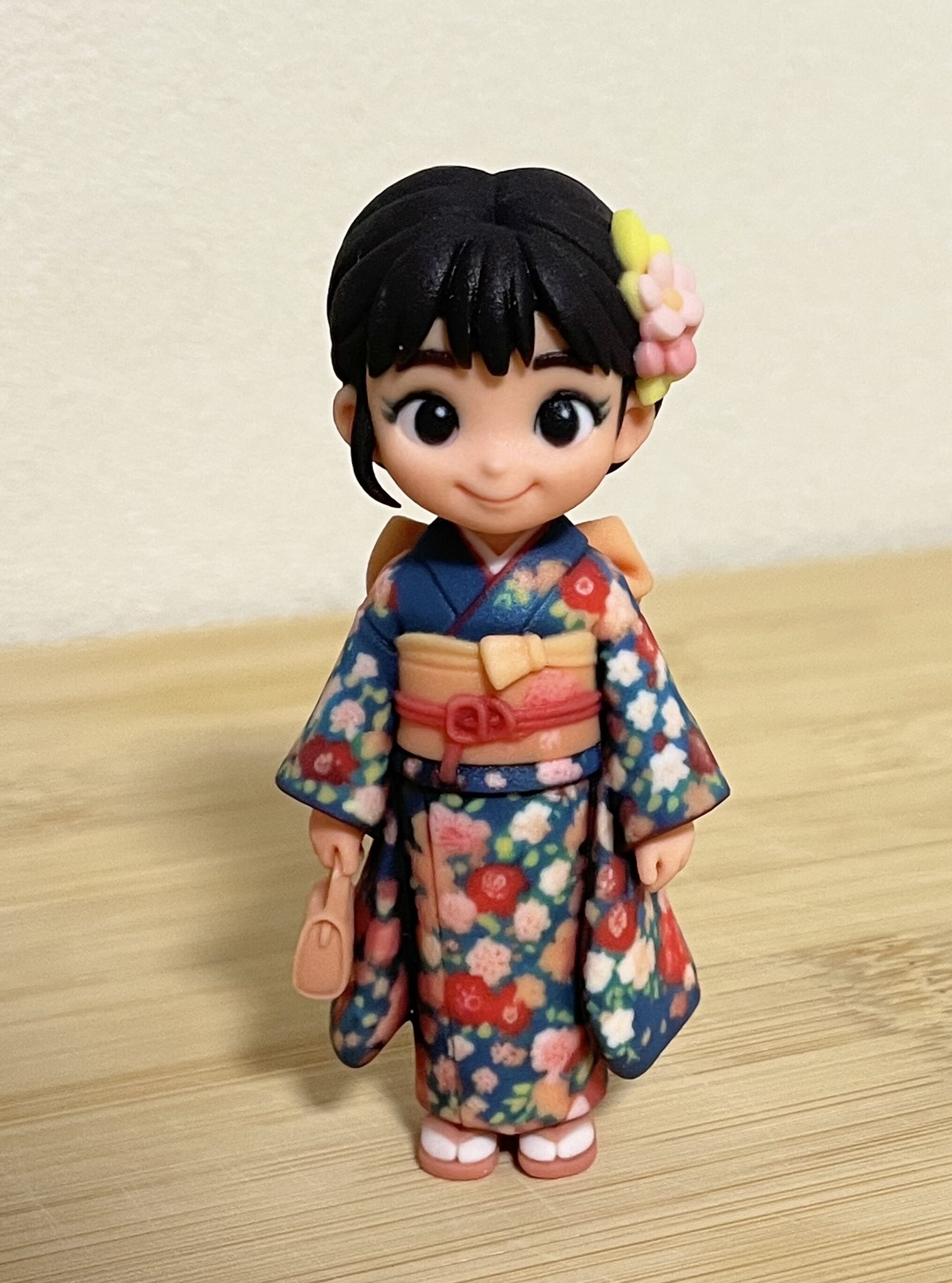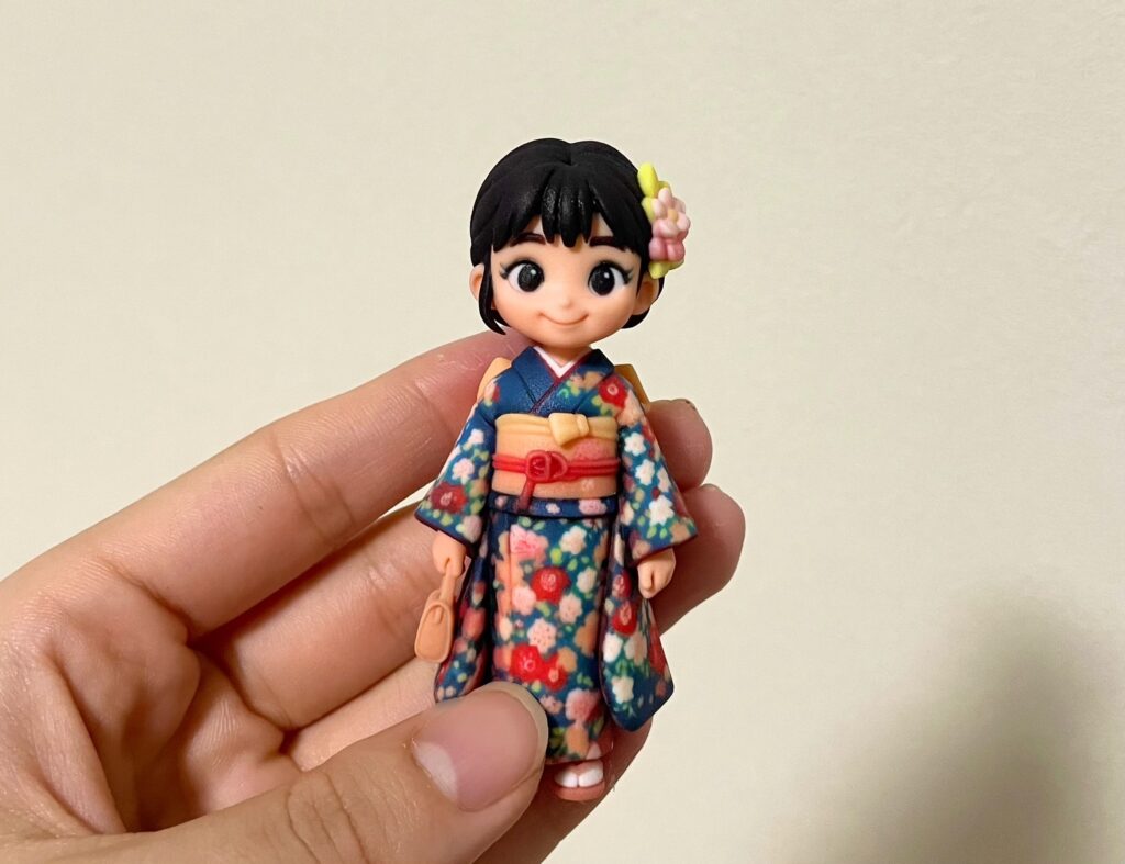 手のひらに収まる可愛いサイズ感で、振袖の細部まで実物そっくり!