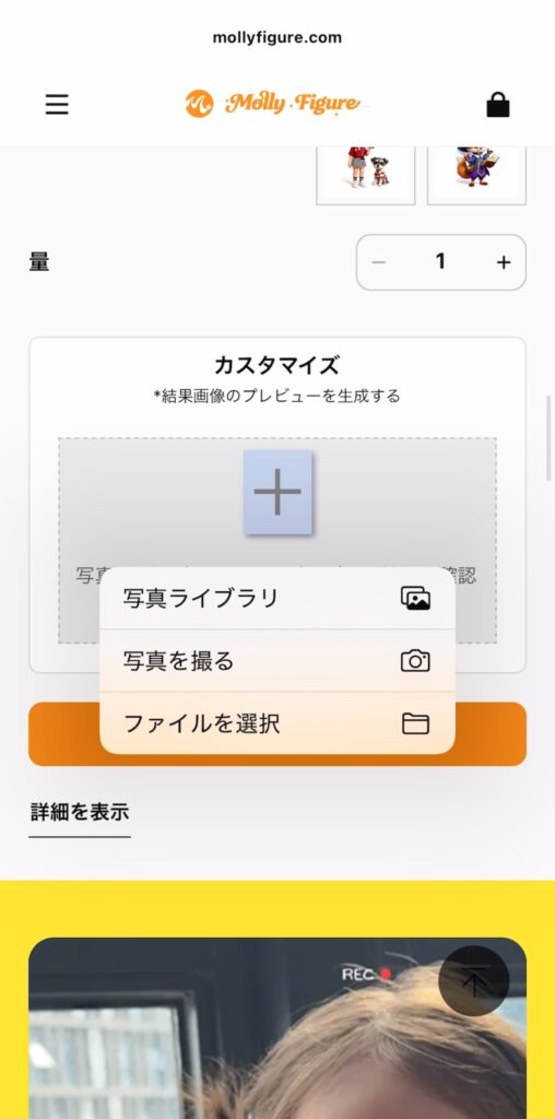 ②フィギュアにしたい写真をアップロード