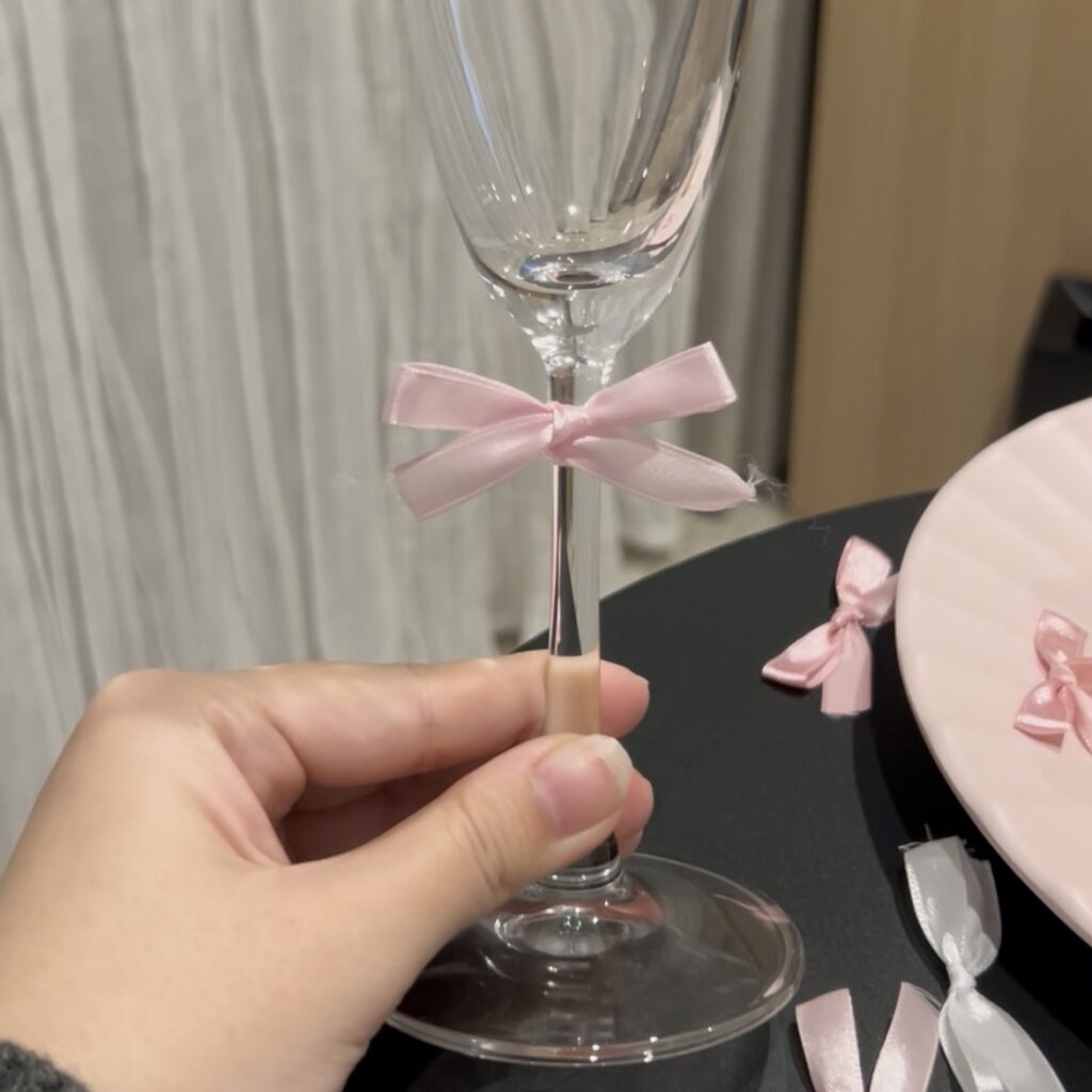 - シャンパングラスの脚につける