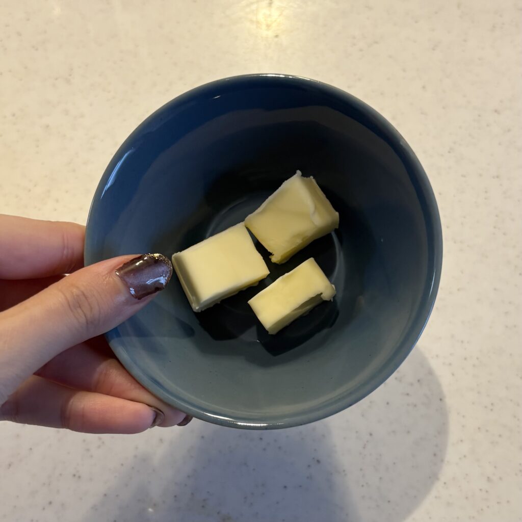 まずは、バター(20g)を600W30秒で溶かしていくよ!