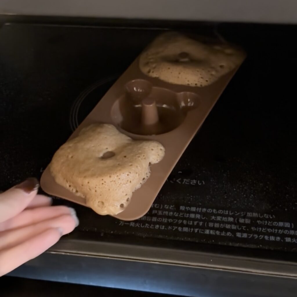 続いてレンジ600Wで40秒→型を回転させてさらに20秒加熱してね🎀