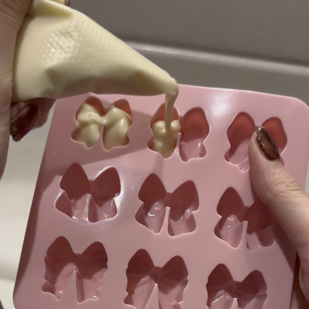 余ったチョコを使って、リボンチョコも作ってみます🎀