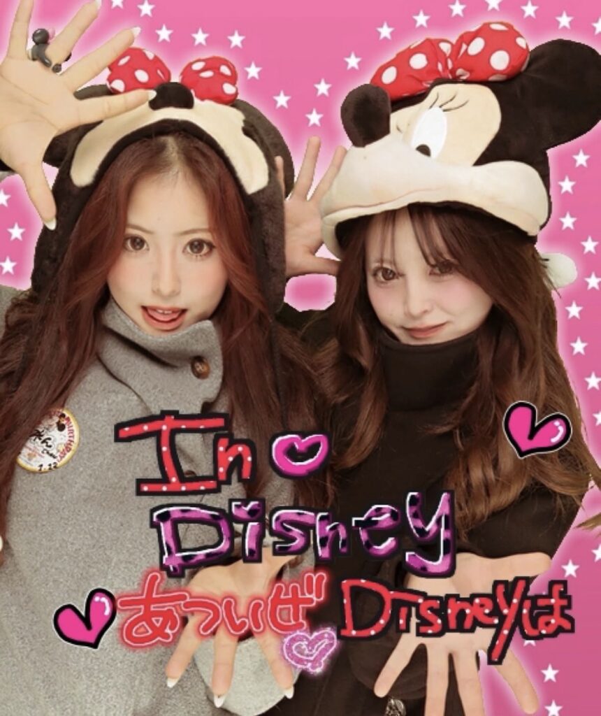 ディズニープリも、派手色背景と落書きで平成っぽく!💕