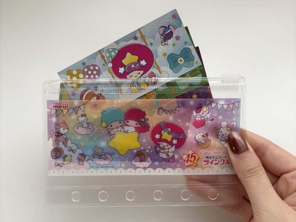 スライダーポーチは、ツインクルのシールを入れるのにぴったりなサイズでした!