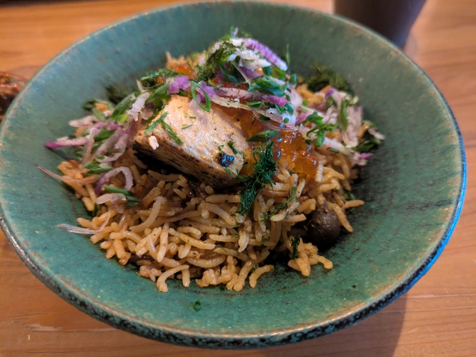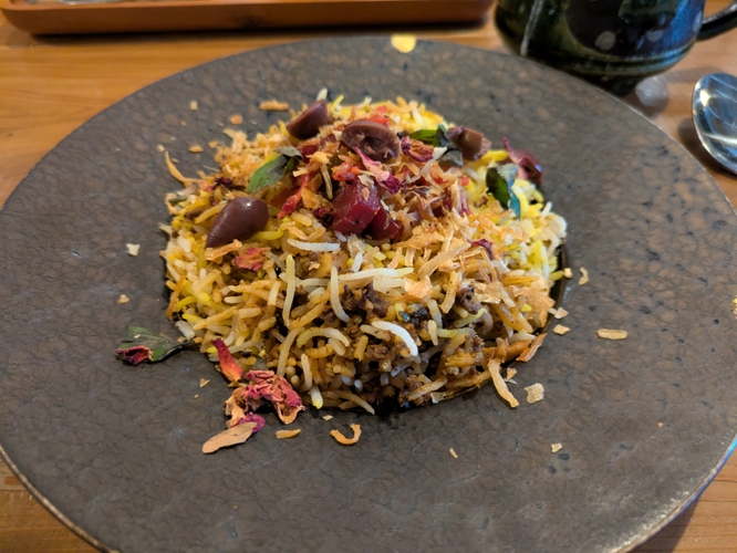 同店の店主が手掛けるのは、インドを代表する米料理「ビリヤニ」をベースに、日本人の味覚に寄り添う「和」の要素を融合させた独創的な一皿。スパイスの持つ力強い香りに旬の食材や日本独自の発酵文化を重ねることで、他にはない“新感覚ビリヤニ”を生み出しています。四ツ谷時代から熱心なスパイスファンに支持されてきた味が、渋谷で新たな進化を遂げます。