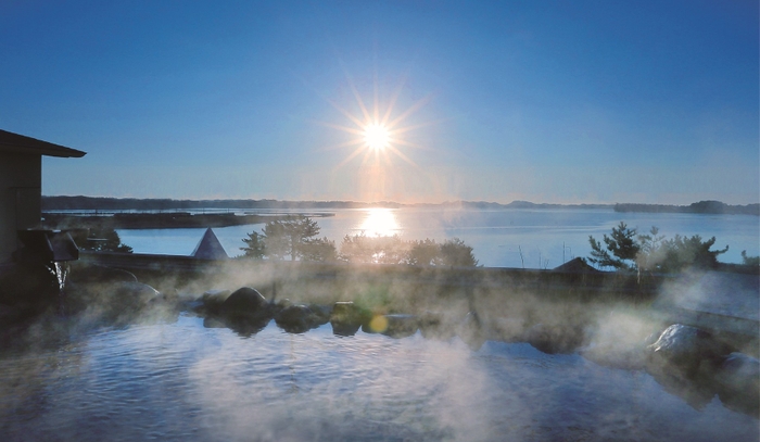 松島温泉は2008年に開湯した県内でも珍しい、新しい温泉地です。地下1500mから湧き出した温泉は、古生代(数億年前)の天水が浸透し、地下の地熱により温められ、長い年月をかけて湯として貯蓄されていたもので、縄文時代からの原風景を今もなお残す松島らしい温泉です。